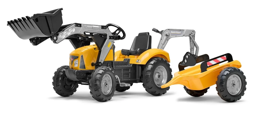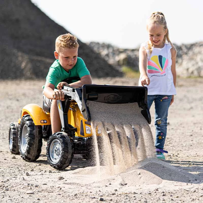 טרקטור פדלים וורסאטילי ענק מבית מותג האיכות FALK' הכולל כף קדמית ואחורית וכן עגלת משא להענקת חוויה מושלמת לילדכם