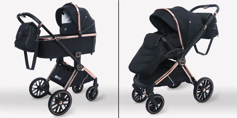 - שלד עגלה בעיצוב נקי עם מרכב טיול וסל שכיבה גבוה לנוחיות נסיעה מקסימלית.