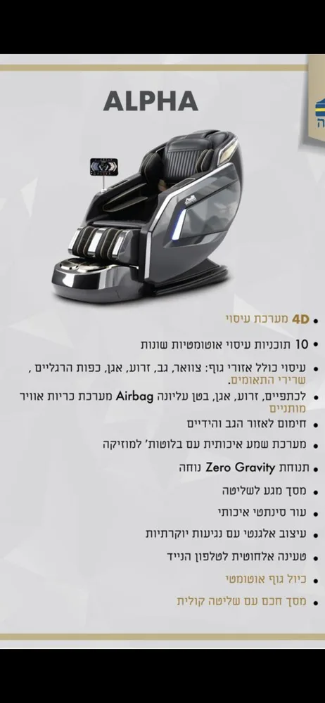 כורסאת הנקה דגם אלפא דגם יוקרתי עם 10 תוכניות עיסוי ומסך חכם עם שליטה קולית ועוד