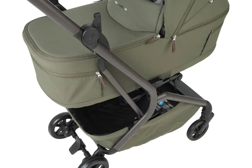 עגלה קומפקטית עם סל שכיבה שמתקפל לשימוש קל ונוח ברכב או ברכבת או במטוס.