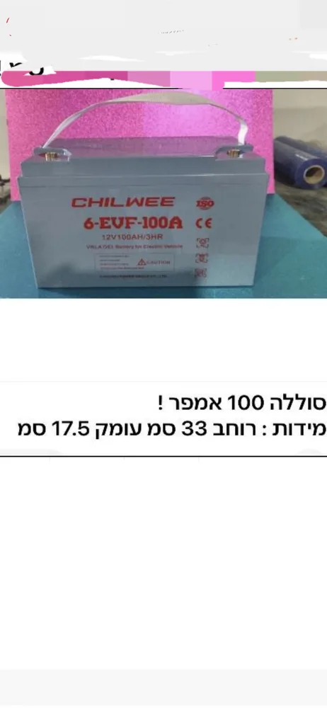 מצבר 12וולט 100 אמפר 12V/100A פריקה עמוקה מבית CHILWEE מיועד לקלאב קאר וקלנועיות ולכל שימוש מחזורי