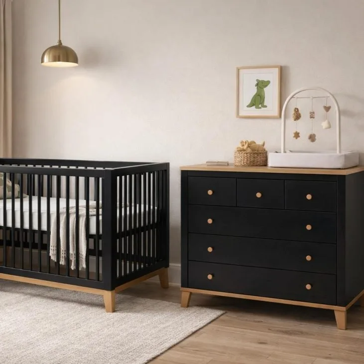 חדר שינה לתינוק שחר בעיצוב נקי ומודרני ובמחיר מבצע