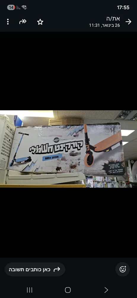 קורקינט חשמלי לילדים מהירות מקס' 12 קמ"ש משקל מקס' 54 ק"ג .מנוע שרשרת.