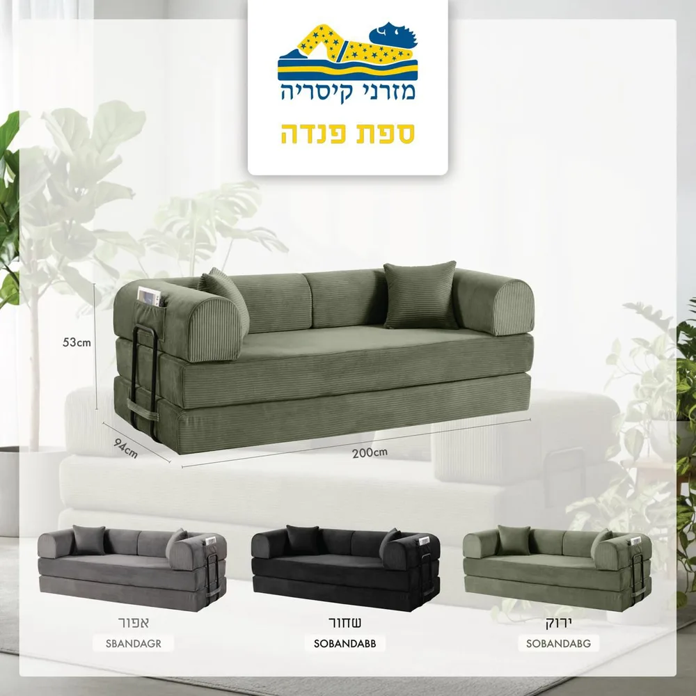 ספה דגם פנדה נפתחת למיטה זוגית עם בד קורדרוי איכותי ומפנק ארוזה באריזת לחץ רוחב 200 ס"מ בשלושה צבעים