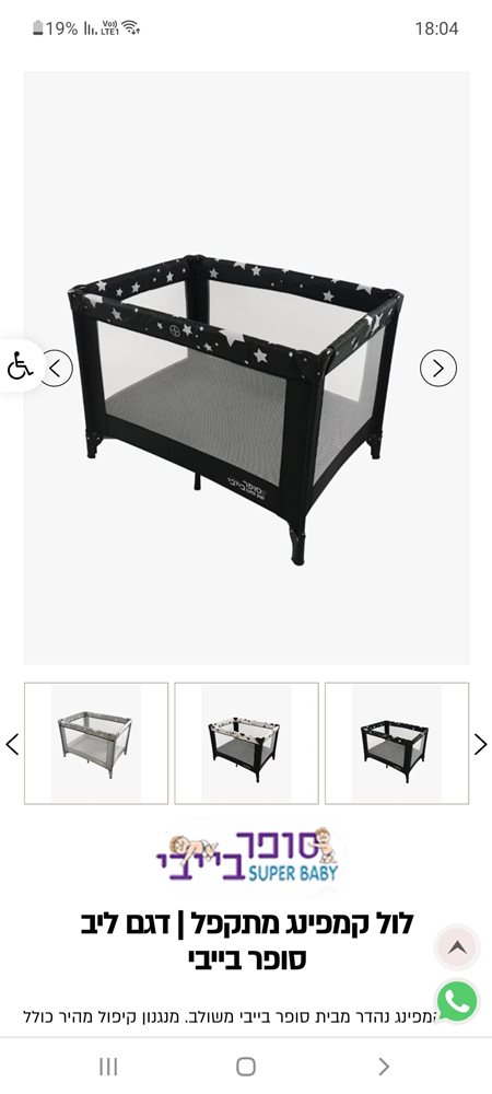לול קמפינג מבית סופר בייבי גדול ויפה נח לקיפול ואחסון מגיע עם מזרן מותאם.