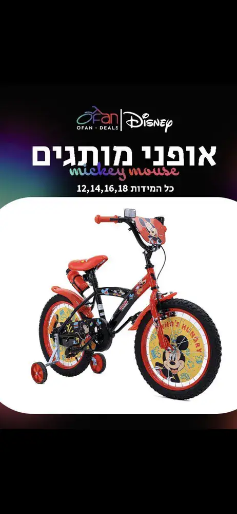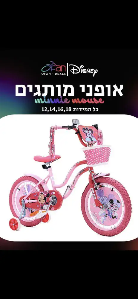 אופני BMX לילדות מיני מאוס כולל סל קידמי מידות 12-18 לפי בחירה