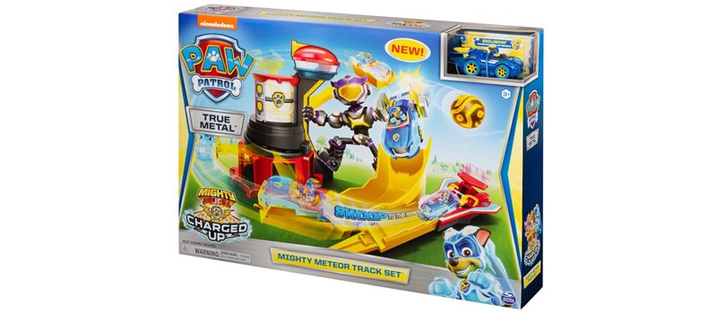 סט מסלול מכוניות Mighty Meteor מבית Paw Patrol הצטרפו למרדפי סיורים של Paw Patrol עם צ'ייס והצטרפו למסלול מירוצים והצילו את המטאור!