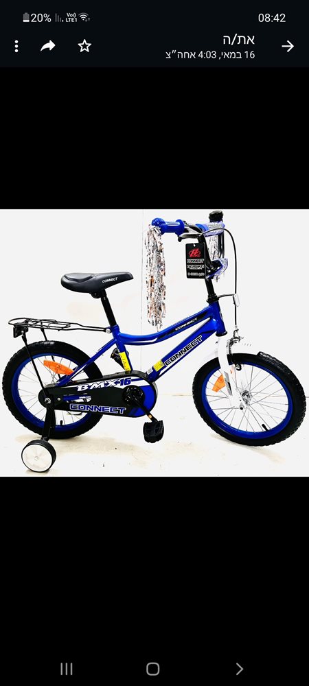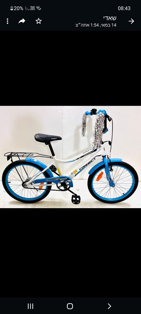 אופני ילדים מידה 20" כולל סבל ורגלית צבעים חדשים