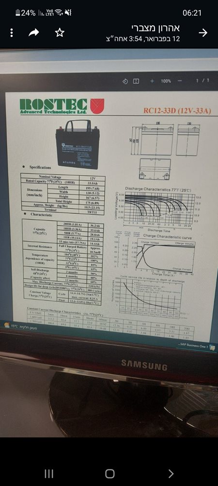 מצבר ג'ל פריקה עמוקה 12v/33a איכותי לשימוש מס רב של פעמים. שנה אחריות