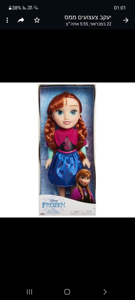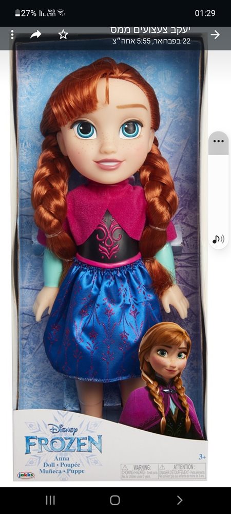 בובת פרוזן האהובה כ"כ מבית דיסני מקורית ואיכותית