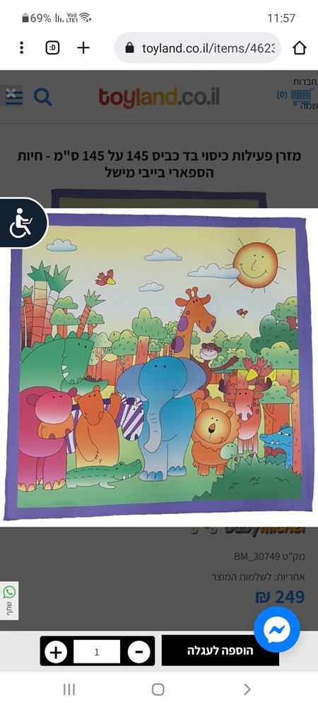 מזרן פעילות צבעוני ועשיר מבית " בייבי מישל " . בד כביסה. בגודל 145/145 ס"מ