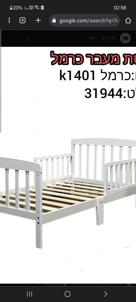 מיטת מעבר כרמל 6 רגליים עם מעקה משתנה לסגירה כמעט מלאה.