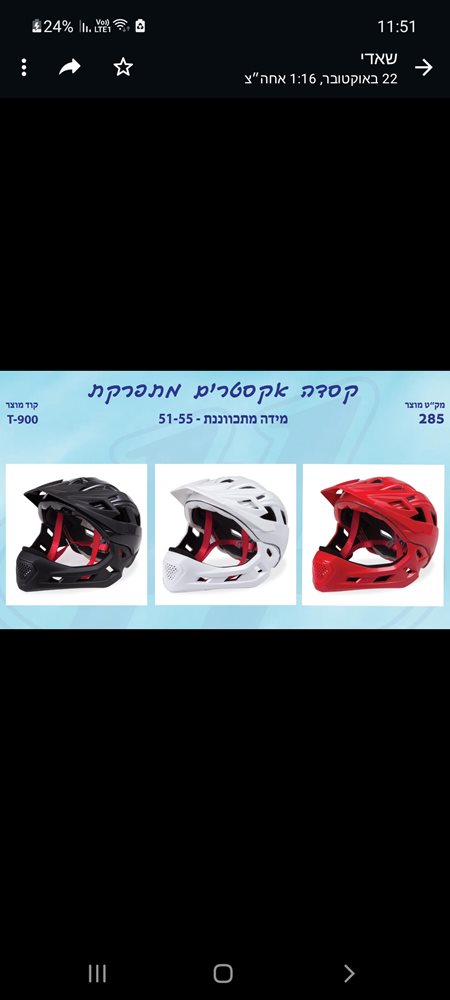 קסדות איכותיות ראש מלא מתפרקות לחצי ראש לרכיבה על גלגלי ובכל המידות ובמגוון צבעים באישור מכון התקנים