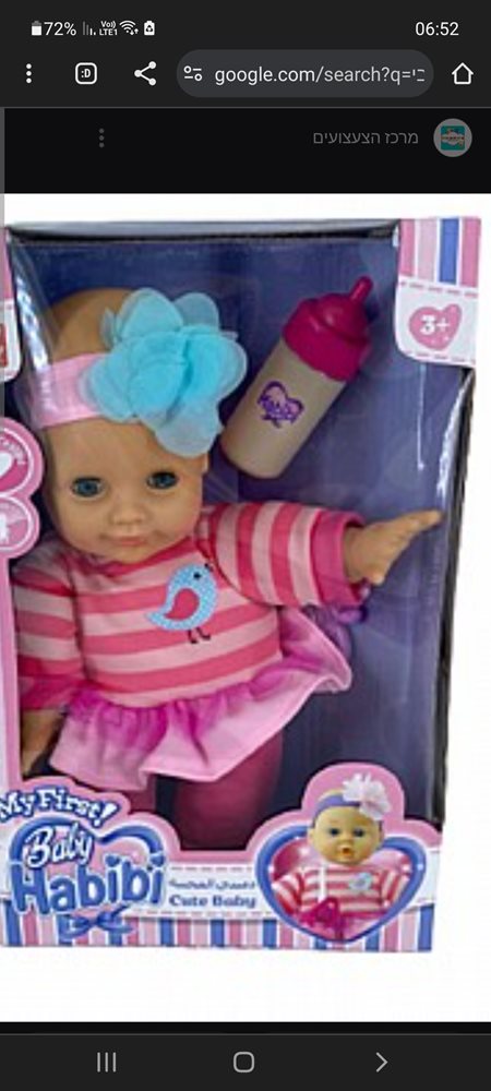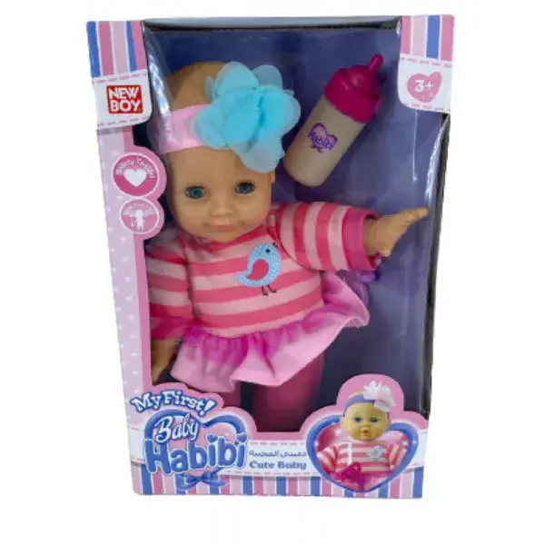 בובת תינוק חביבי עם בקבוק. גודל הבובה כ-30 ס"מ