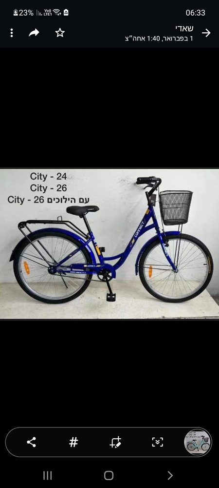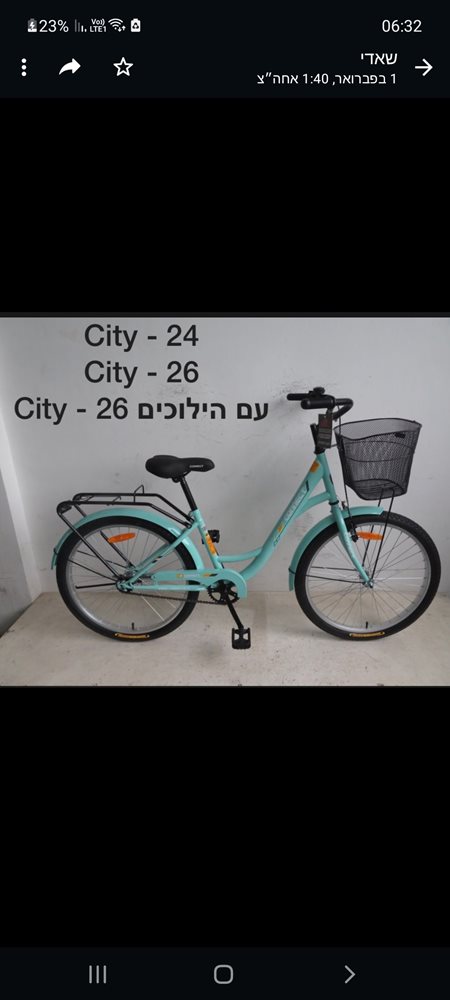 אופני קיבוץ גודל 26" למבוגרים עם הילוכים סבל אחורי וסל קדמי