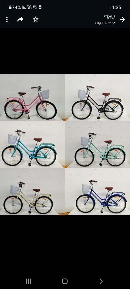 אופני קיבוץ אלומיניום מעצור רגל ויד מידה 26" עם סל קדמי וסבל.