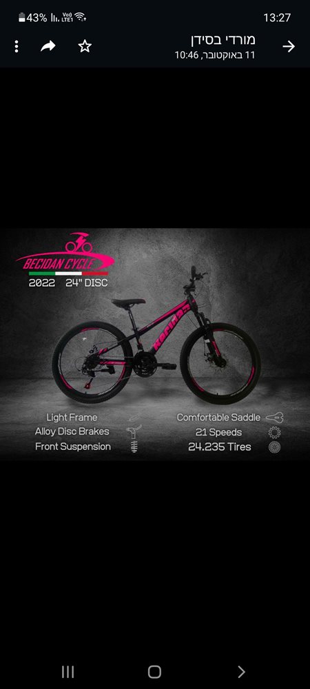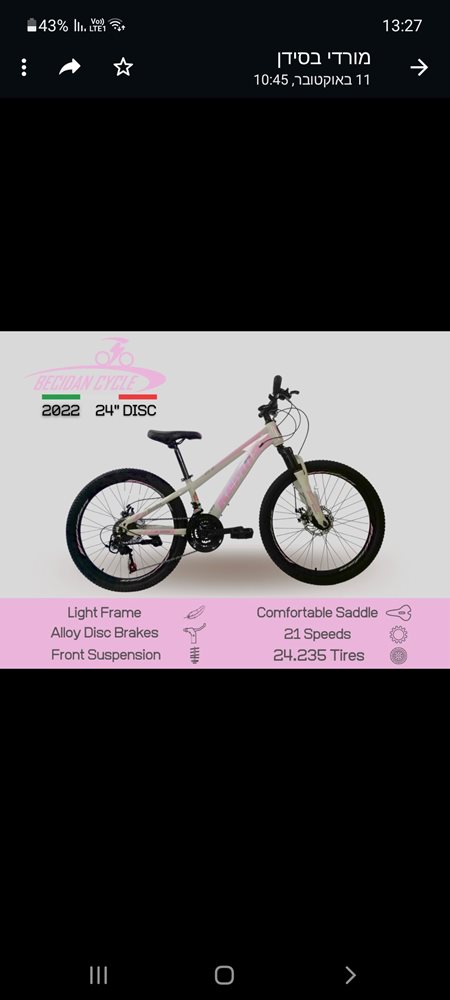 אופני הרים 24" 26" איכותיים בצבעים מהממים !מעצורי דיסק הילוכים איזי פייר. רמה גבוהה.