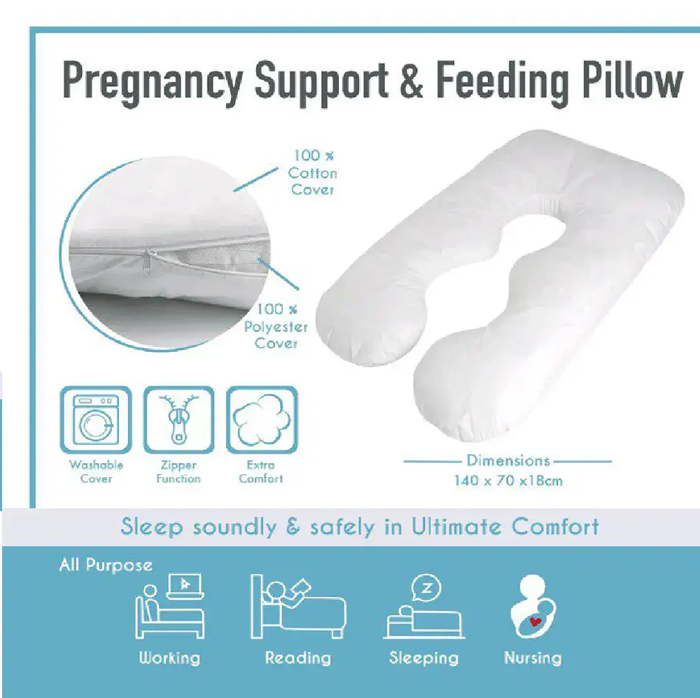 כרית הריון שמשמשת לתמיכה והאכלה עם כיסוי בד כותנה בצבע לבן