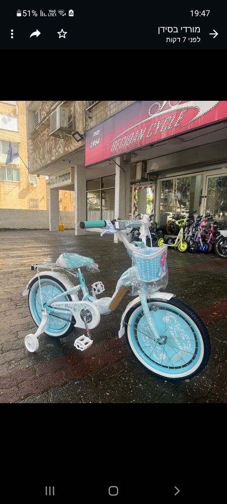 אופני בנות מידה 18" או 20" בעיצוב ייחודי ומהמם. סל קדמי. סבל אחורי וכסא רחב. קיים בצבע לבן, ורוד ותכלת