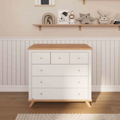 חדר השינה המהמם מגיע בעיצוב יוצא דופן, בשילוב איכות גבוהה ללא פשרות שידה טורונטו מגיעה עם פינה מעוגלת בפלטה עליונה , ופינה מעוגלת פלטה תחתונה לשמירה על סביבה בטוחה לתינוק. עם חלוקת מגירות פרקטית 3 מגירות קטנות ותוספת 3 מגירות גדולות וטריקה שקטה איכותיות בעלות כושר נשיאה גבוה.
