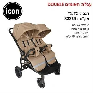 עגלת תאומים ICON עם גגונים ענקיים ופגוש קידמי במחיר מסחרר